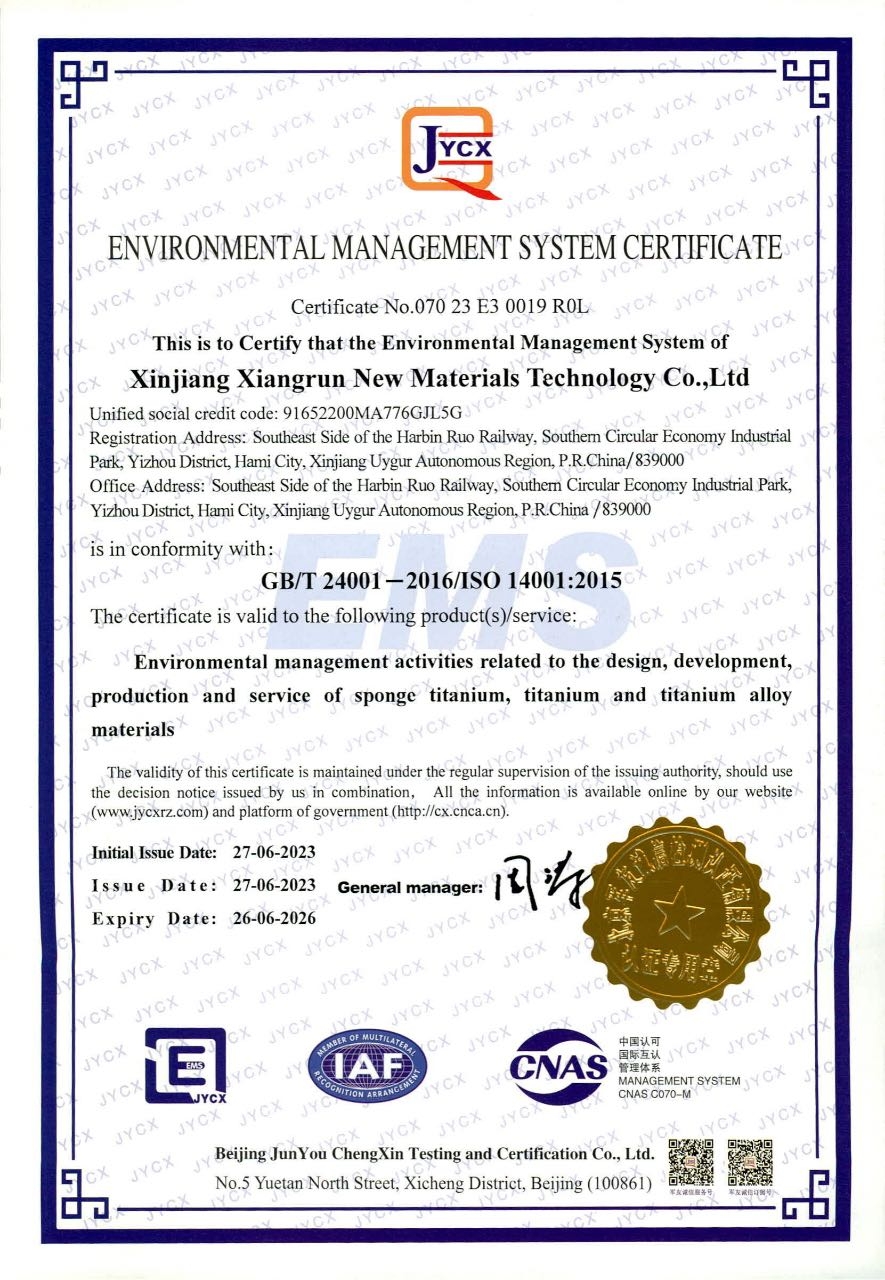 环境管理体系认证证书(中文)